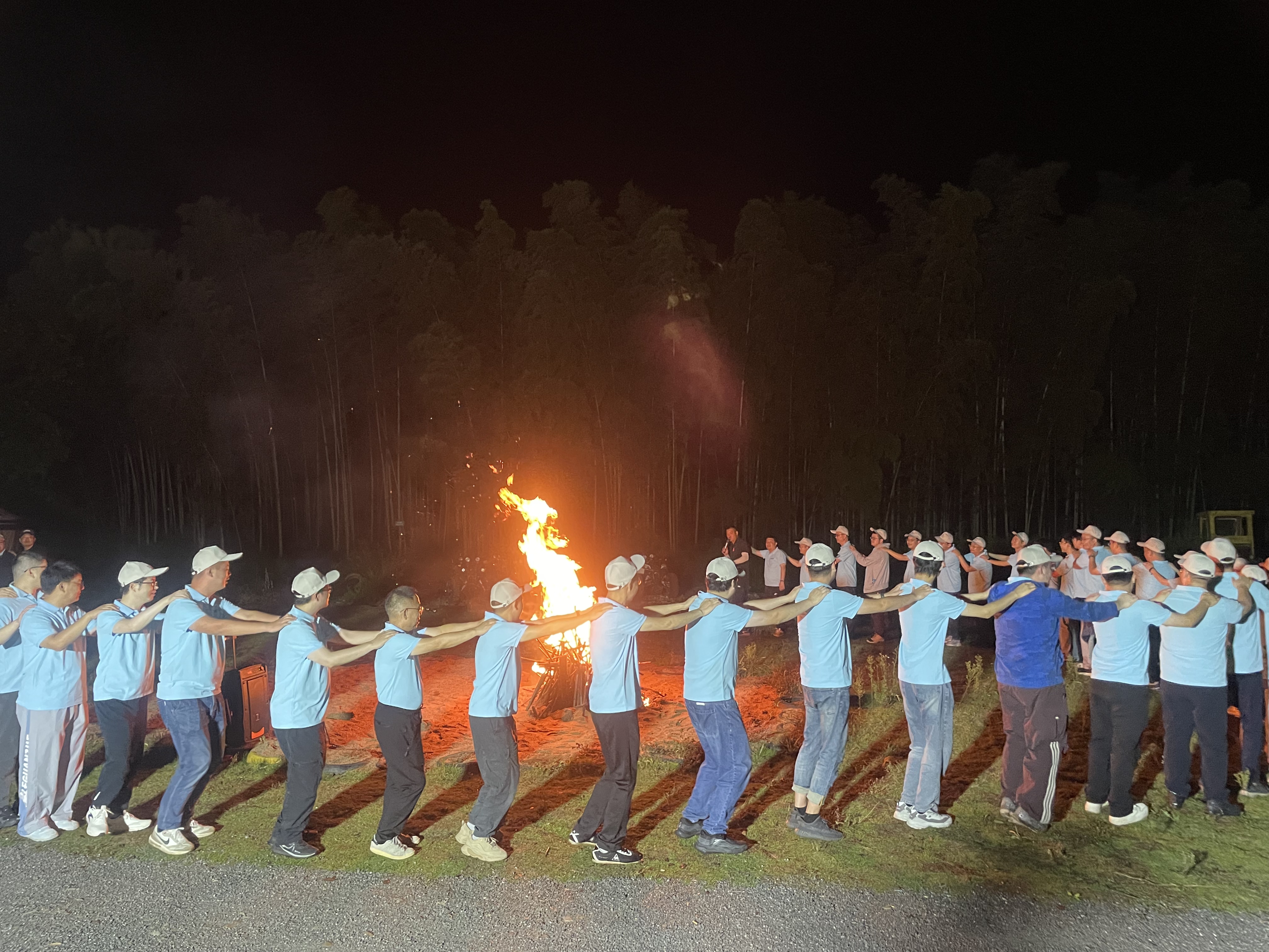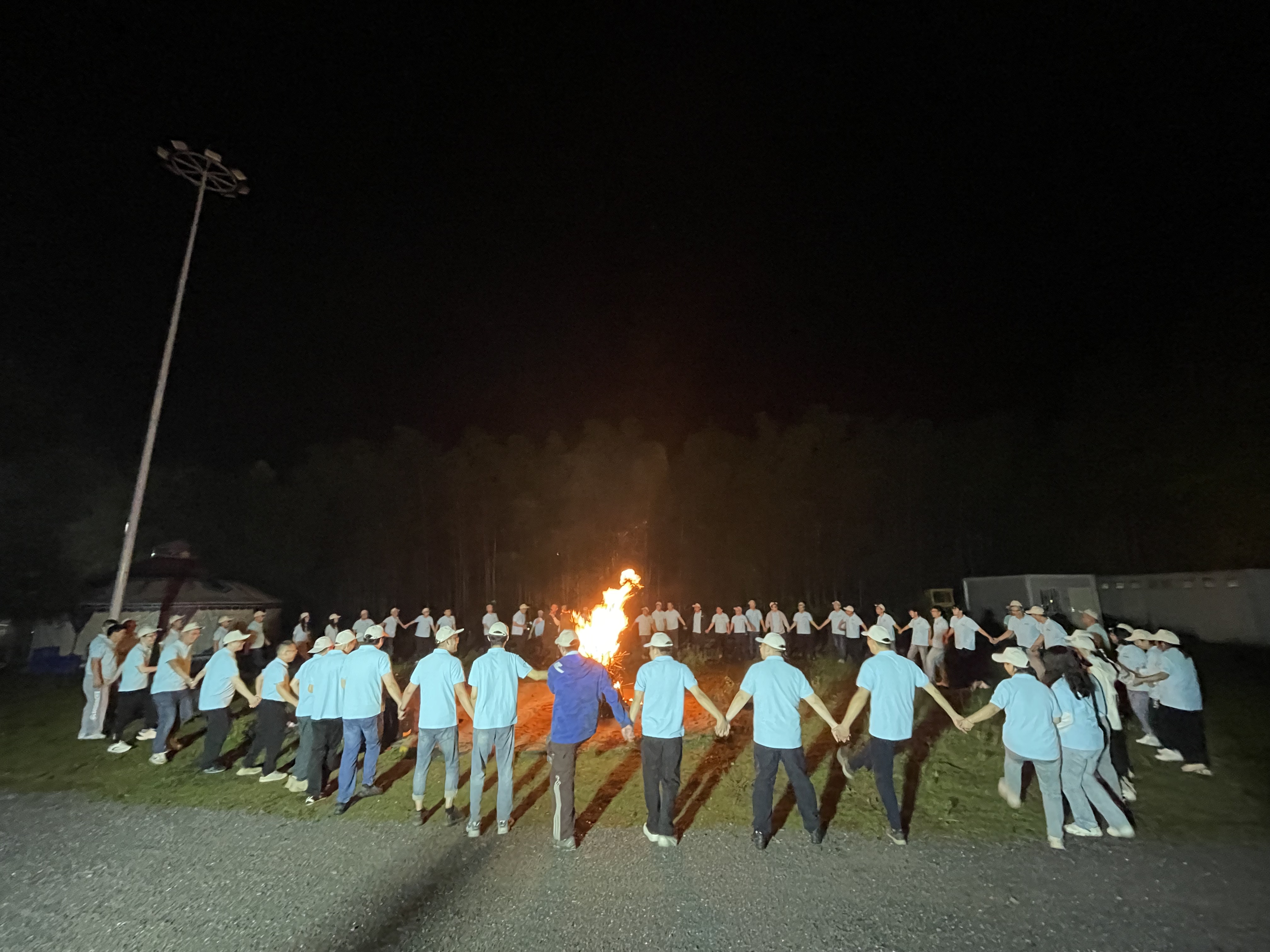 夜幕降臨,啤酒配燒烤的美食盛宴后,一場篝火晚會點燃了大家的激情。熊熊篝火象征著燦能電力蒸蒸日上的發(fā)展前景與薪火相傳的企業(yè)文化。圍繞著火堆,大家手拉著手,唱歌跳舞,共享美好瞬間。